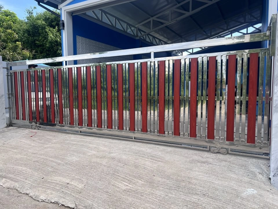 ผลงานติดตั้งประตูรั้วสแตนเลสอะลูมิเนียมลายไม้ ดีไซน์สวยงามทันสมัย
