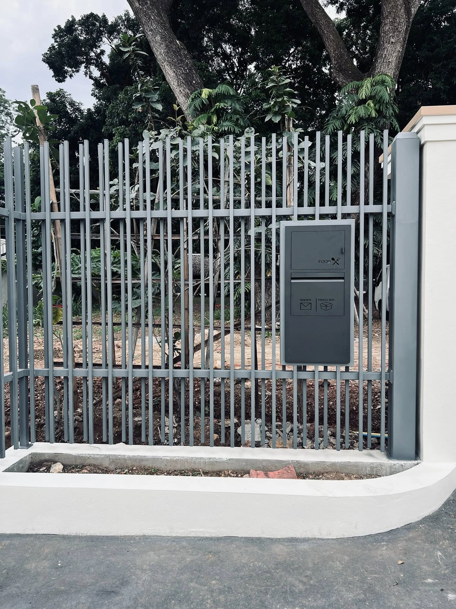 งานติดตั้งรั้วเหล็กกล่องแนวตั้ง ขนาด 2x30 เมตร ออกแบบในสไตล์โมเดิร์น เน้นความเรียบหรูและโปร่งโล่ง